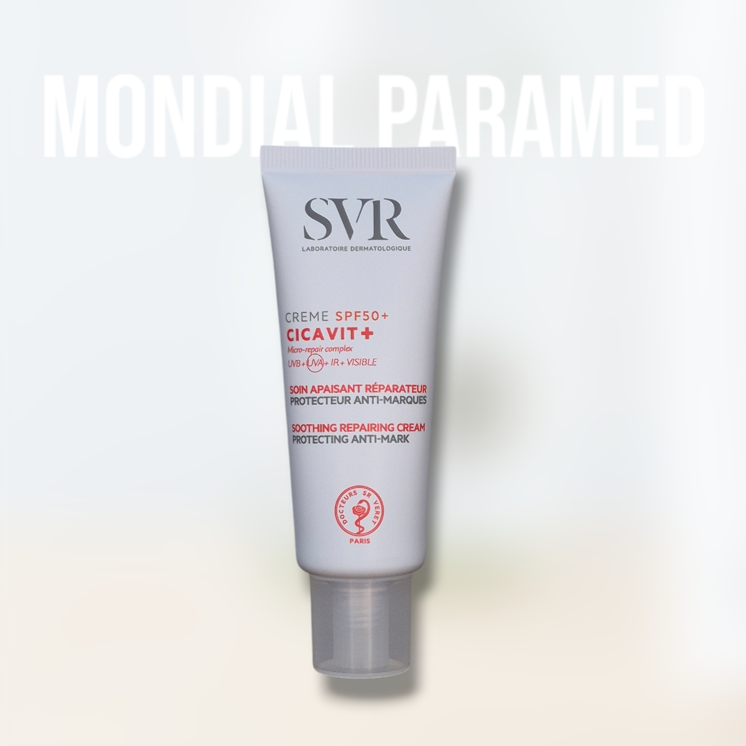 Cicavit+ Crème SPF50+ est un soin réparateur et protecteur spécialement conçu pour les peaux abîmées et irritées, y compris les peaux sensibles et celles exposées au soleil. Grâce à sa technologie avancée de photoprotection, elle cible tous les types de rayons (UVA, UVB, lumière visible et infrarouge) pour limiter l’apparition des marques rouges et brunes.